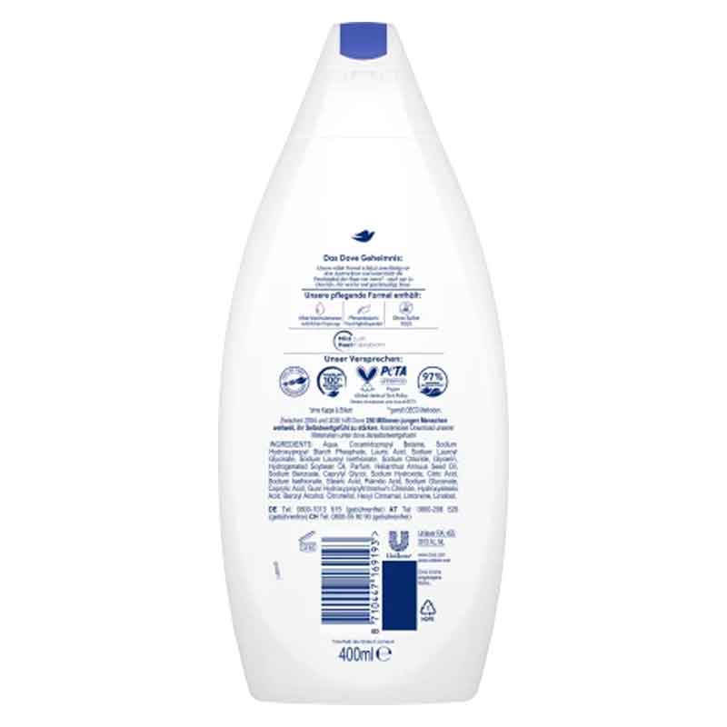 يحتوي كريم دوف للعناية الغنية على ¼ كريم مرطب ومواد تنظيف خفيفة. الرغوة الغنية تدلل بشرتك بمكونات العناية حتى تشعر بالنظافة والعناية. يساعد على الحفاظ على محتوى الرطوبة الطبيعية لبشرتك. التركيبة الغنية والكريمية لطيفة على البشرة وتضمن بشرة أكثر نعومة بشكل ملحوظ بعد استحمام واحد فقط.