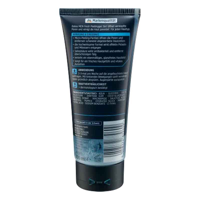 يفتح Balea MEN Fresh Peeling Gel 3in1 المسام المسدودة وينظف البشرة بعمق في المسام وهو مناسب لجميع أنواع البشرة. تفتح جزيئات التقشير الدقيقة المسام وتزيل خلايا الجلد الميتة بلطف، بينما تعمل التركيبة عالية الفعالية على مقاومة البثور والرؤوس السوداء بشكل فعال. حمض الساليسيليك له تأثير مضاد للجراثيم ويزيل الزهم الزائد. يمنح الجل البشرة مظهرًا متساويًا وخاليًا من اللمعان ويضمن أن تبدو البشرة منتعشة ومظهرًا حيويًا.
