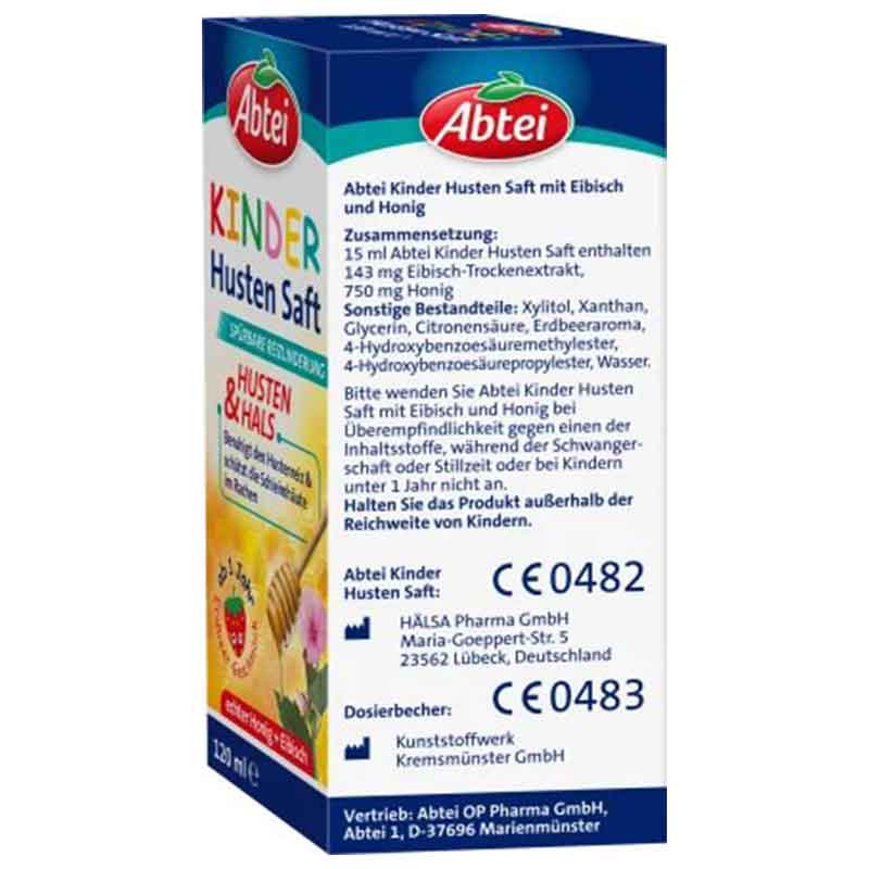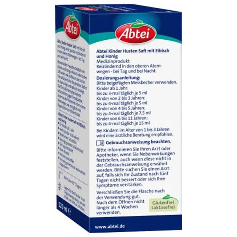 عصير الخطمي + العسل للأطفال من Abtei له تأثير مهدئ بشكل ملحوظ على الجهاز التنفسي العلوي – ليلاً ونهارًا. إنه يشكل طبقة واقية ويهدئ الأغشية المخاطية المتهيجة. وهي مناسبة للأطفال بعمر سنة واحدة فما فوق.
