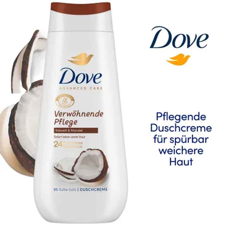 كريم الاستحمام المتطور بزيت جوز الهند واللوز من دوف لطيف على البشرة بشكل خاص. يتم إثراء العناية بقطرات MicroMoisture، التي تترك البشرة ناعمة كالحرير