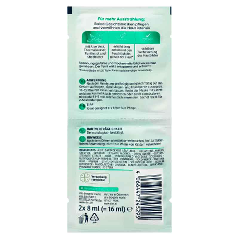 ماسك الوجه مع 70% من الصبار والمياه الحرارية Gesichtsmaske Aloe Vera